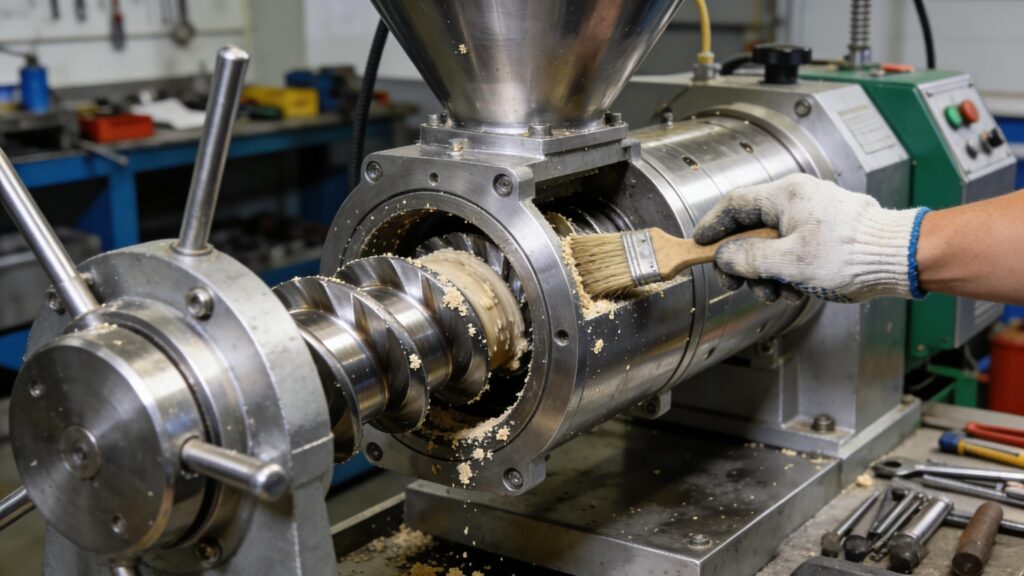 - Remove the Die and Cutter: Carefully detach the die plate and cutter assembly. These parts often have complex geometries where material can get stuck and should be cleaned immediately . It is often best to clean them while they are still warm .