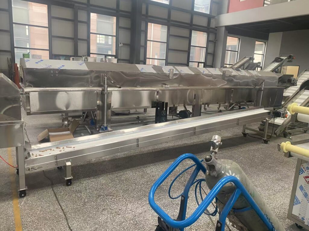- After frying, the product passes through a de-oiling system to remove excess oil